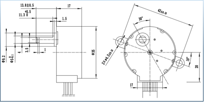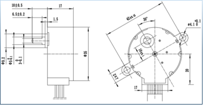 35BYJ46 is a permanent magnet type geared stepper motor with 4 phases, featuring a step angle of 7.5° (output shaft) and a reduction ratio of 1/85. The motor is known for its simple structure, high reliability, good dynamic performance, large output torque, and low power consumption, making it suitable for a wide range of precise control applications